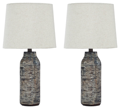 Turn on the brilliance and modern flair of this table lamp set. The angular silhouette and intriguing base in distressed black are the definition o...