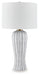 Classic sophistication meets modern sensibility. The gracefully fluted base of this table lamp brings a dynamic feel to the white shade's crisp look. Finished in a versatile antiqued gray, the transitional piece effortlessly bridges casual and contemporary design.