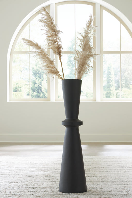 Crafted with contemporary spaces in mind, this black-hued vase is a versatile addition to your decor. Its hourglass shape and textured pattern make...