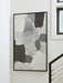 Handsomely made, this wall art takes an abstract approach to contemporary stylings. Its neutral hues make a solo statement or act as a grounding centerpiece to a gallery wall—perfect for pairing alongside muted tones or vibrant colors alike. Hand-painted embellishments and a sleek black frame provide added refinement.