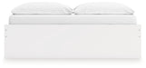 | Details | Includes platform bed panels, platform rails and roll slats , Made with engineered wood (MDF/particleboard/plywood) and decorative laminate for the right balance of affordability and durability, Solid white finish, Decorative laminate replicates natural or man-made material surfaces with consistent color, pattern and texture, Bed does not require additional foundation/box spring; accommodates most zero clearance adjustable bases , Mattress available, sold separately, Assembly required | |