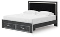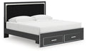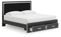 Details Includes upholstered panel headboard, storage footboard, platform rails and roll slats , Made with engineered wood (MDF/particleboard/plywood) and decorative laminate for the right balance of affordability and durability , Matte black finish with subtle replicated wood grain, Decorative laminate replicates natural or man-made material surfaces with consistent color, pattern and texture , Polyester upholstery , Chrome-tone and glitter accents, Large-scale chrome-tone handles with faceted details, 2 smooth-gliding drawers , Drawer interiors are lined with a faux linen laminate for a clean, finished look , Bed does not require additional foundation/box spring; accommodates most zero clearance adjustable bases with the addition of a bunkie board, Mattress available, sold separately, Minor assembly required