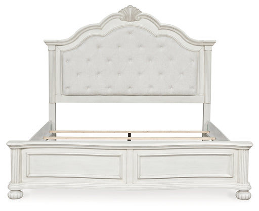 Traditional design. Casual appeal. You can have it all with this queen upholstered panel bed. A relaxed chipped white finish and an inset headboard...