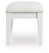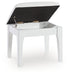| Details | Made with solid wood frame, Bright white lacquer finish, Polyester upholstery, Foam cushion, Hinged seat reveals storage compartment, Assembly required | |