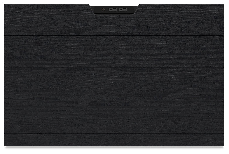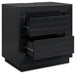 Details Made with pine solids, veneers and engineered wood substrate, Textured black wood stain with waxy topcoat, Hardware-less design, 2 drawers with fully finished interiors, dovetail construction and ball-bearing side glides, 110V power supply with dual USB charging ports, Power cord included; UL Listed