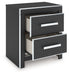 | Details | Made with engineered wood (MDF/particleboard/plywood) and decorative laminate for the right balance of affordability and durability, Matte black finish with subtle replicated wood grain, Decorative laminate replicates natural or man-made material surfaces with consistent color, pattern and texture, Chrome-tone accents, Large-scale chrome-tone handles with faceted details, 2 smooth-gliding drawers, Drawer interiors are lined with a faux linen laminate for a clean, finished look, Slim profile USB-A and USB-C charging ports, Power cord included; UL Listed, Minor assembly required | |