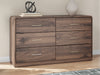 Grace your restful retreat with an added dose of refinement. This dresser showcases a stunning rich brown wood tone, with sleek drawer pulls for an added layer of luxury. A rounded top softens the silhouette, elevating the look. It’s curated, contemporary and utterly chic.