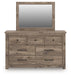 Details Includes dresser and mirror, Made with engineered wood (MDF/particleboard/plywood) and decorative laminate for the right balance of affordability and durability , Deep brown finish over replicated hickory grain with authentic touch, Decorative laminate replicates natural or man-made material surfaces with consistent color, pattern and texture, Hardware with dark bronze-tone finish, 7 smooth-gliding drawers , Drawer interiors are lined with a faux linen laminate for a clean, finished look , Mirror attaches to back of dresser; can also be mounted on wall horizontally or vertically, Safety is a top priority, clothing storage units are designed to meet the most current standard for stability, ASTM F 2057 (ASTM International), Drawers extend out to accommodate maximum access to drawer interior while maintaining safety, Assembly required