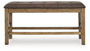 Looking for the ideal seating to host everything from casual family meals to larger gatherings? With an inviting light brown finish and a cushioned seat wrapped in supple faux leather, this handsome counter height dining bench is the perfect piece for making wonderful memories. Cheers to that.