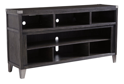 Make watching TV a joy with this large TV stand. Its top surface accommodates TVs up to 70 inches. The stand's rustic-industrial style—with a gray ...