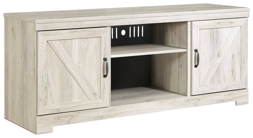 Express your farmhouse style with this TV stand. Its wispy white finish over replicated oak wood grain is a delightful change from the ordinary. Cl...