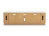 Elegance meets earthy charm in this TV stand. Crafting a contemporary living room? The faux marble top expertly pairs with the reeded base for a trend-right take on day-to-day function. Open shelving and subtly integrated storage cabinets make it easy to store and display media accessories in style.