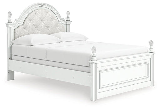 Fit for a princess. This full upholstered panel bed’s crisp matte white finish pairs with charming ornate beading and sumptuous button-tufted uphol...