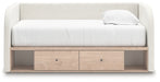 Looking for a full daybed that's both playful and practical for your little one? This piece is just the ticket. Its softly rounded shaping rocks a boho vibe, while the light upholstery creates a casually inviting look that whispers “sweet dreams.” Spacious drawers underneath provide plenty of storage, so there’s no need for a messy room.