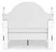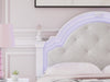 Fit for a princess. This full upholstered panel bed’s crisp matte white finish pairs with charming ornate beading and sumptuous button-tufted upholstery—perfect for your girly girl. Decorative ball tops and multicolored LED lighting in the headboard are the crowning touches to make your little one feel like royalty.