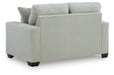 The crisp neutral hue and striking design details of this loveseat create a living room that expertly reflects your modern taste. For irresistibly cool textural appeal, the ultra-soft fabric is enhanced by a small-scale corded look. With a clean-lined silhouette complete with track arms, this loveseat allows you to take a trend-right approach to everyday living.