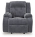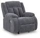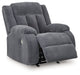 There's no need to sacrifice looks for comfort—this power rocker recliner serves up both, plus a richly relaxed sense of style. Its steel-hued velvet upholstery is ultra soft, with a plush waffle weave for an added layer of interest. The overstuffed pillow top armrests are custom made for lazy afternoon catnaps. And a one-touch power control takes the pleasure of reclining to a higher level.