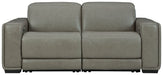 Details Includes 2 pieces: left-arm facing zero wall power recliner and right-arm facing zero wall power recliner, "Left-arm" and "right-arm" describe the position of the arm when you face the piece, One-touch power control with adjustable positions, Easy View™ adjustable headrest and zero-draw USB plug-in, Zero-draw technology only consumes power when the USB receptacle is in use, Zero wall design requires minimal space between wall and chair back, Corner-blocked frame with metal reinforced seat, Attached back and seat cushions; high-quality foam cushions wrapped in poly fiber, 100% top grain leather covers inside areas such as the back, seat and arm cushions; skillfully matched faux leather covers the remaining areas, Due to its natural origin, real leather can show individual characteristics such as healed scars, growth marks, grain variation and shade variation, Natural variations make each hide unique and do not detract from the wearing qualities of leather, Exposed feet with faux wood finish, Extended ottoman for enhanced comfort, Power cord included; UL Listed