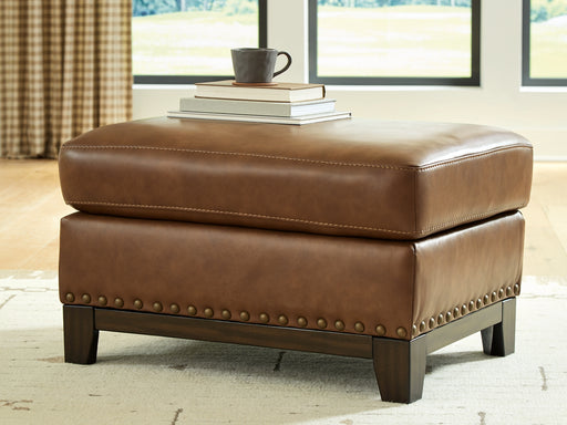 Refined design meets classic comfort in this oversized accent ottoman. Ultra-chic brown leather covers the cushion top, reflecting an on-trend appr...