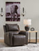 | Details | One-touch power control with adjustable positions and zero-draw USB port, Zero-draw technology only consumes power when the USB receptacle is in use, Corner-blocked frame with metal reinforced seat, Attached cushions, High-quality foam cushions wrapped in poly fiber, 100% top grain leather covers inside areas such as the back, seat and arm cushions; skillfully matched faux leather covers the remaining areas, Due to its natural origin, real leather can show individual characteristics such as healed scars, growth marks, grain variation and shade variation, Natural variations make each hide unique and do not detract from the wearing qualities of leather, Gentle rocking motion, Extended ottoman for enhanced comfort, Power cord included; UL Listed | |