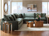 Contemporary, classic—or a bit of both? If you’re longing for a look that feels modern yet timeless, feast your eyes on this sectional. Subtle tapered arms lend true transitional appeal, while oversized reversible cushions add a sense of everyday ease. Softly textured, the gorgeous jade green chenille upholstery steals the show. And that’s how you snuggle up in grand style.