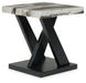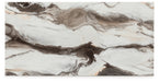 Details Includes coffee table and 2 end tables, Made with decorative paper laminate and MDF substrate, Faux white marble top with brown veining, Base with dark replicated wood grain, Coffee table with casters for easy mobility, Assembly required