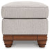 Fresh yet classic. That’s the beauty of this ottoman. Dressy and also soft to the touch, its organic neutral-toned upholstery is sure to bring a transitional farmhouse aesthetic to your living space. A full wraparound base and decorative legs complete the timeless look. It's the perfect place to kick up your feet at the end of a long day.