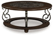 This coffee table is nothing short of stunning. A rich, warm brown finish exudes opulent elegance, while ornate metal legs add a touch of timeless sophistication. It's perfect for displaying your delicious decor in grand style.