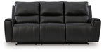 Looking for that perfect blend of comfort and style? This reclining sofa wraps you in luxury with an expertly crafted combination of leather and faux leather upholstery. Its clean lines and rich neutral tone work beautifully in contemporary spaces. With plump pillow top arms and pull tab reclining, it's your go-to spot for relaxing after a long day.