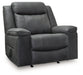 Indulge in larger-than-life style with this recliner. Intentionally crafted to provide extra support, its generously sized seat and high back invite you to sit back and settle in. When you’re ready to recline, a smooth one-pull motion puts you in the comfort zone. And your luxurious lounging experience is made complete with soft faux leather in a richly neutral contemporary hue.