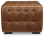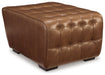 A mid-century modern update to a retro classic, this ottoman is generously adaptable. Its combination of skillfully matched leather and faux leather upholstery exudes luxury and elegance. The cushion's dramatic tufting beckons you to kick back and relax. Merging comfort with high-style design, this piece is in a league of its own.