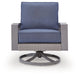 High style crafted for low-maintenance living. Turn your outdoor space into a sweet retreat with this swivel rocker lounge chair. The casually cool piece entices with easy-breezy gray resin wicker over an all-weather aluminum frame, for an upscale aesthetic that’s downright durable. Wrapped in high-performance Nuvella® fabric, the plush cushions are indulgently comfortable yet so easy to maintain. Lounge on.