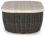 Add luxury, convenience and durability to alfresco fun. This outdoor coffee table captures the textural beauty of wicker while withstanding the elements, from rain to shine. With its marble-look aluminum top, you can stylishly stage decor or keep snacks and drinks in reach.