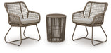 | Details | Includes table and 2 chairs, Made with aluminum frame and polyester rope, Chair with reinforced steel legs, Cushions with solution-dyed high-performance fabric, Nuvella® is an outdoor fabric that can be cleaned and offers UV resistance, All-weather foam cushion core wrapped in soft polyester, Clean fabric with mild soap and water, let air dry; for stubborn stains, use a solution of 4 oz. bleach to 28 oz. water, Stainless steel hardware resists rust and boosts longevity, Designed to withstand the harsh elements of the outdoors, Assembly required | |