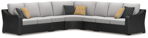 Sleek, contemporary style meets outdoor living in this sectional. Its clean-lined black aluminum frame and resin wicker back expertly balance good ...