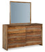 Details Includes dresser and mirror, Made with sheesham wood, veneer and MDF substrate, Clear natural wood-tone finish , Front frame with thick beveled edge, 6 smooth-gliding drawers with fully finished interior, dovetail construction and heavy duty ball-bearing side glides, Mirror attaches to back of dresser