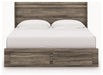 Rest in the casually cool style of this king panel storage bed. A weathered brown finish and chill LED lighting create an easygoing vibe, setting the scene in your restful retreat. Spacious drawers underneath provide plenty of storage. The bed's clean-lined design provides a fuss-free look.
