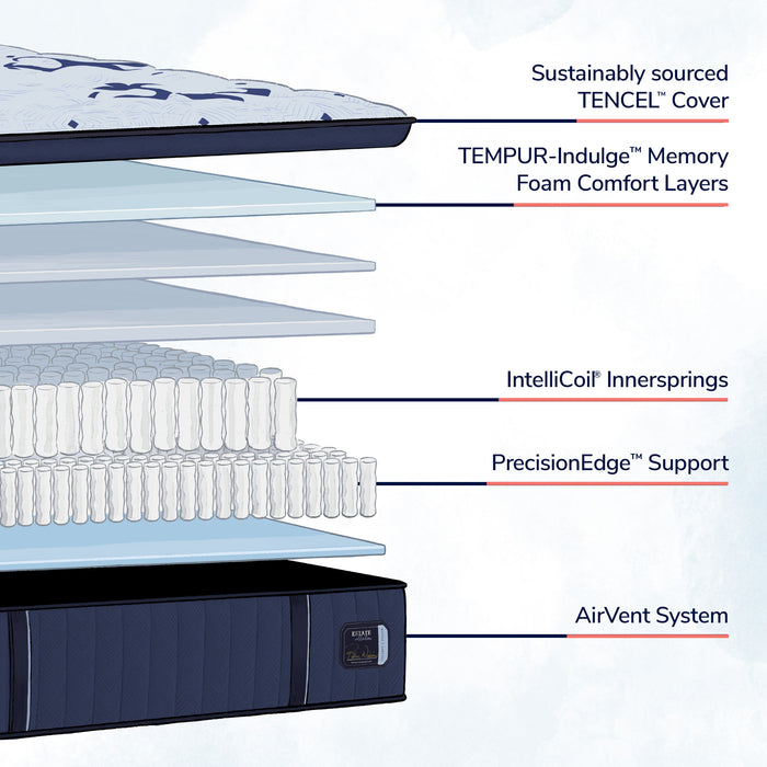 The Stearns & Foster® Estate Collection takes comfort to the next level featuring Memory Foam for enhanced pressure relief and our exclusive IntelliCoil® innersprings for added support all night long.- Memory Foam Comfort Layers: These high-quality memory foam comfort layers perfectly match the curves of your body to help deliver pressure relief and all-night comfort and support, exclusively developed for Stearns & Foster®