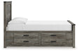 Details Includes panel headboard, footboard, under bed storage with side rail and roll slats, Made with engineered wood (MDF/particleboard/plywood) and decorative laminate for the right balance of affordability and durability, Rustic warm gray finish over replicated oak grain with authentic touch, Decorative laminate replicates natural or man-made material surfaces with consistent color, pattern and texture, 2 smooth-gliding storage drawers, Bed does not require additional foundation/box spring; accommodates most zero clearance adjustable bases with the addition of a bunkie board, Mattress available, sold separately, Assembly required