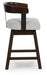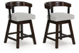 | Details | Made with solid wood frame, Dry, smoky dark brown oak finish, Polyester upholstery, Foam cushioned seat, 360-degree swivel, Assembly required | |