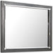 | Details | Made of engineered wood (MDF/particleboard) and decorative laminate, Gray finish with replicated wood grain, Faceted chrome-tone pulls and accents, 6 smooth-operating drawers, Drawers lined with faux linen laminate, Mirror attaches to back of dresser, Includes tipover restraint device, Assembly required | |