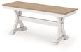 Busy breakfasts and family dinners get a dose of modern farmhouse flair with this dining bench. Its two-tone finish contrasts a light butcher block hue with antiqued white for an utterly charming effect. An effortless seating solution, the bench can tuck under your table to give you extra space to maneuver through the dining room.