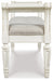 | Details | Tufted seat with foam cushion, Made of polyester, Wood frame, Antiqued white finish | |