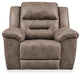 Details Corner-blocked frame with metal reinforced seat, Pull tab reclining motion, Gentle rocking motion, Attached cushions, High-quality foam cushions wrapped in poly fiber, Faux leather upholstery