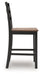 This counter height bar stool dresses up your favorite farmhouse motifs with modern flair. A contoured butcher-block style seat keeps you comfortable and provides a ruggedly chic contrast to the sleek black frame.